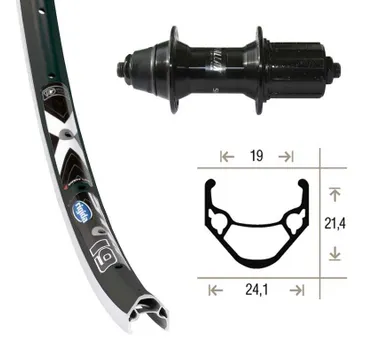 Shimano RM60-8 kassettnav med stickaxel för 7-10 delad kassett. Rigida X-Star 19-622 mm dubbelbottnad fälg i svart med silverfärgad sida. 36 st rostfria ekrar i svart. Distansring för 7-delad kassett D40-588.