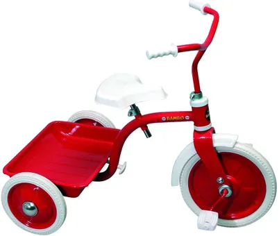 Crescent Bambo är Sveriges - och kanske till och med världens - mest klassiska trehjuling. Med sina ram i metall och gummidäck klarar den alla påfrestningar som kommer när barn använder leksaker. Bambo har tippbart flak och justerbar höjd på sadeln.