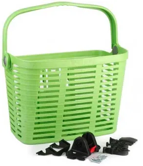 En smart korg som även fungerar på moderna cyklar. Monteras med ett snabbfäste i styre, diameter 22-25mm. Snabbkoppling för att enkelt kunna ta med korgen. Maxlast 5Kg. Mått B25xH35xD23cm. Djupet är 14cm i botten. Tillverkad i plast.
