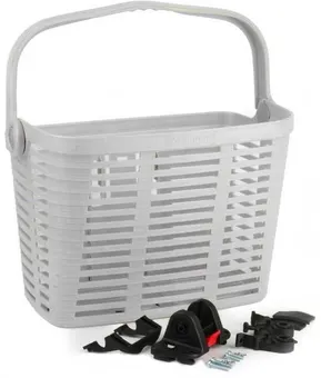 En smart korg som även fungerar på moderna cyklar. Monteras med ett snabbfäste i styre, diameter 22-25mm. Snabbkoppling för att enkelt kunna ta med korgen. Maxlast 5Kg. Mått B25xH35xD23cm. Djupet är 14cm i botten. Tillverkad i plast.