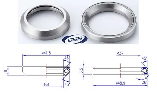 Lösa lager för tapered styrlager. Övre lager diameter: 1.1/8” – 41.8 mm. Undre lager diameter: 1.3/8” - 48.9 mm. 36ºx45º tätade cromo lager. Passar: BHP-456 och andra med samma storlek
