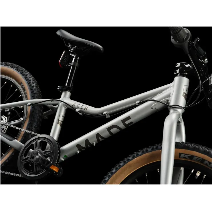 Viihdyttävä ja ajointoinen MADE Acer 20 on täydellinen juniorimalli nuorille pyöräilijöille, jotka todella haluavat kehittyä eivätkä anna materiaalin asettaa rajoja. Nopea, ketterä ja hyvin rakennettu hardtail, joka on saanut runsaasti inspiraatiota puhtaista kilpapyöristä eikä koskaan peräänny uuden haasteen edessä. Malli on varustettu komponenteilla, jotka kestävät kovempaakin käsittelyä, ja laadukas alumiinirunko on vaikuttavan kevyt ja samaa korkeaa luokkaa kuin huomattavasti kalliimmat mallit. Mukaansatempaava maastopyörä, joka tarjoaa luotettavan suorituskyvyn, korkean käyttövarmuuden, erinomaisen jarrutuskyvyn ja voidaan lisäksi varustaa lukuisilla erilaisilla lisävarusteilla tarpeen mukaan.