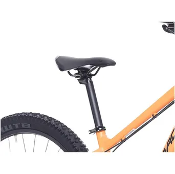 Malli on varustettu jousitetulla etuhaarukalla, jossa on 80mm joustomatka ja joka on täysin mukautettu kevyemmille pyöräilijöille. Epätasaiset alustat eivät ole minkäänlainen ongelma pyörän tukeville 27.5-tuumaisille, joissa on 2.25 leveys, ja kun on aika hidastaa vauhtia, se tapahtuu tehokkailla hydraulisilla levyjarruilla, joissa on helppokäyttöiset jarruvivut, jotka on myös mukautettu pienemmille käsille, mikä varmistaa, että vanhempana voit olla varma tehokkaasta jarrutustehosta aina tarvittaessa.