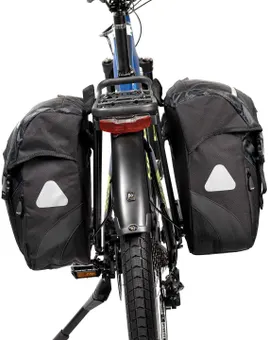 XLC BA-S40 är ett par packväskor för pakethållaren som är snygga, stryktåliga och praktiska. Detta par sitter ej ihop utan kan användas var för sig och är därför perfekta för dig som vill ha en högre grad av flexibilitet. De sitter på sidan av pakethållaren – en till vänster och en till höger och kan alltså användas separat. Ett bärhandtag gör den enkel att bära mellan turerna och invändigt har du ett huvudfack och en nätficka. En snörning gör att du kan stänga igen väskan säkert innan du viker ner toppfliken. De har ytterfack där du kan förvara småsaker, och på baksidan har du reflextrianglar som ökar din säkerhet.