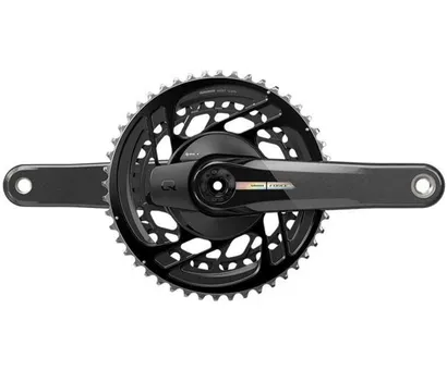 Det högklassiga vevpartiet med inbyggd wattmätare SRAM Force AXS DUB med 2x-drivlina i kombination med en 12-växlad kassett skapar en imponerande utväxling och är ett fantastiskt sätt att kunna tackla många olika discipliner. Du får det bästa av två världar, en lätt och styv direktmonterad kedjekrans med grymt exakt effektmätning som är helt integrerad i kedjedrevet låter dig samla in all den data du behöver. Dess lätta och slittåliga direktmonterade kedjedrev har X-Range-teknik som ger dig mer räckvidd och mjukare växlingar, och de är monterade på ett par vevarma i kolfiber med en spektakulär men subtil finish lyfter vilken cykel som helst.